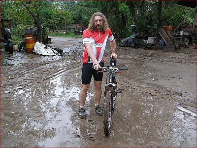 V pátek jsem byl pozván na oběd k Černým na čakru, což je místní výraz pro farmu. Tahle je asi 30 km jižně od města, takže jsem k cestě zvolil kolo. V noci a ráno sice pršelo, ale kolem desáté bylo v ulicích Saénz Peni sucho. Vyrazil jsem a prvních 15 kilometrů po asfaltové silnici se jelo pohádkově, pak na křižovatce náhle asfalt skončil a mně došlo, že v noci spadlo vody dost. Těch zbývajících 15 kilometrů pampou po nezpevněné cestě byl opravdu očistec: mosquitos, polvorines (komáři, bodavé mušky) a dvakrát muselo kolo na rameno.